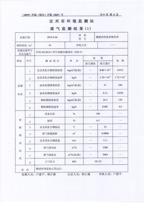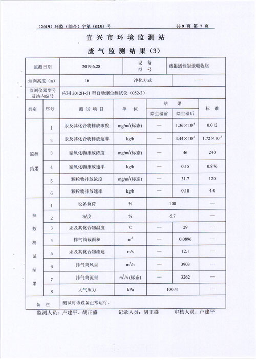 2019年第二季度监测及检测报告