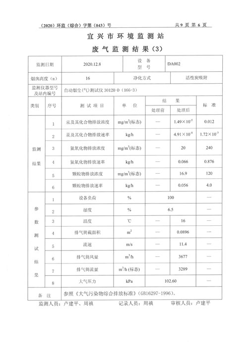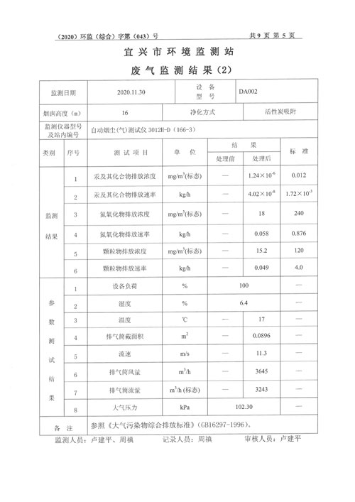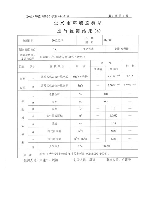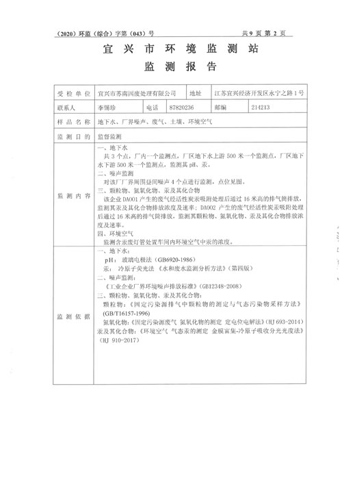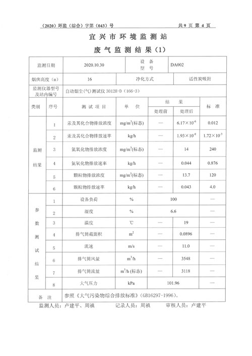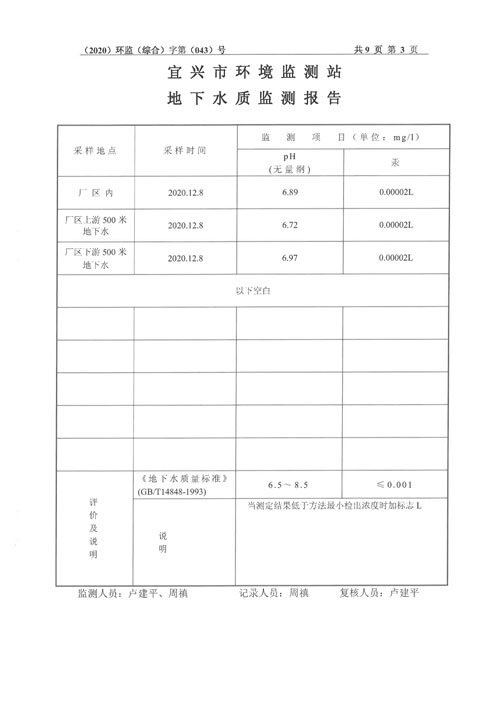 2020年第四季度监测及检测报告